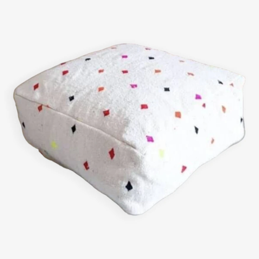 Handmade berber kilim pouf different dominant colors possible give relief and style to the decor of your living room with this kilim pouf entirely designed by hand in the béni ouarin region in morocco.