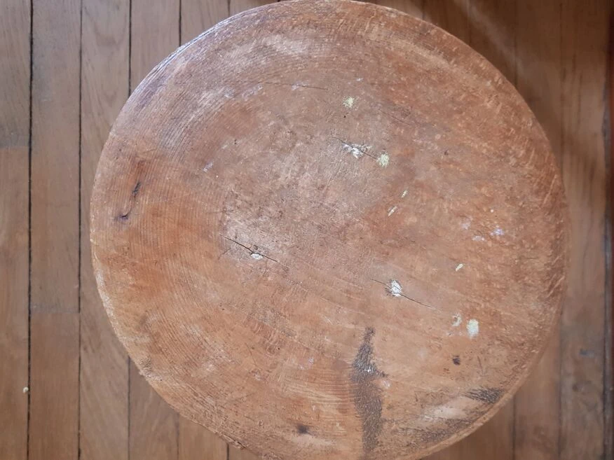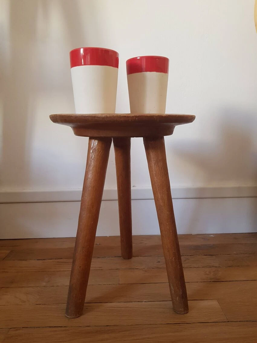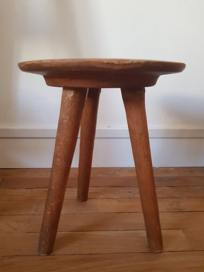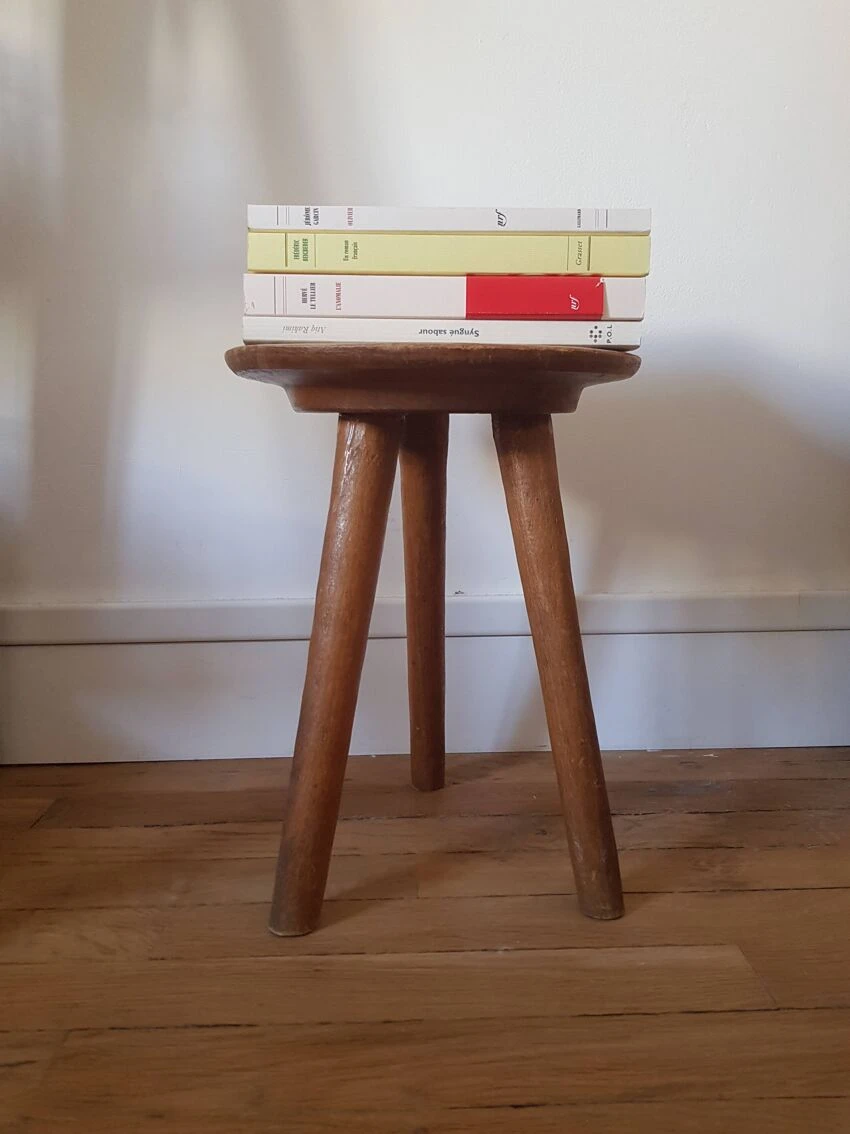 Low tripod stool from the 60s in its own juice it can serve as a bedside table, stool or plant rest.