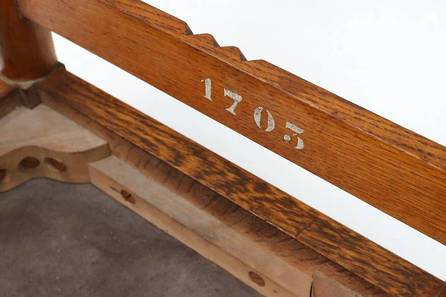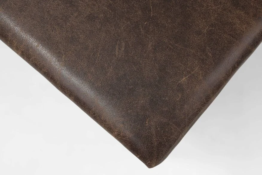 The rich brown color of the leather complements the natural tones of the wood, creating a timeless piece that will seamlessly blend in with any decor style.