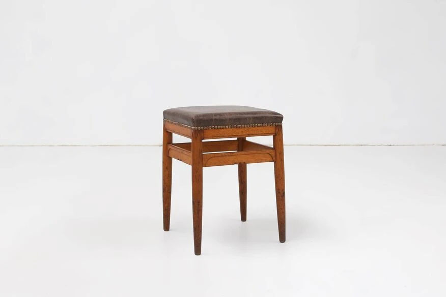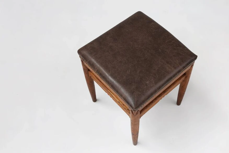 This elegant stool combines the warmth of wooden legs with the sophistication of a brown leather seat, making it a versatile and stylish addition to any interior.