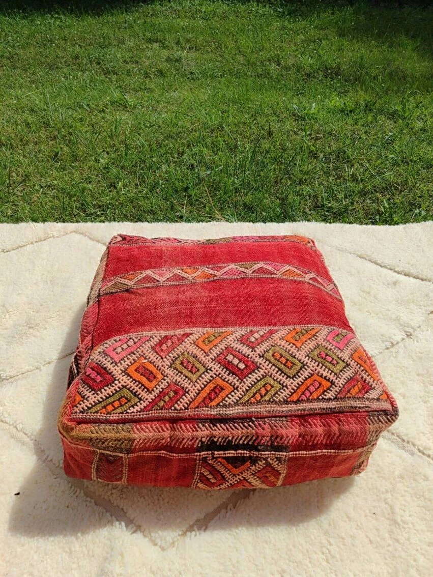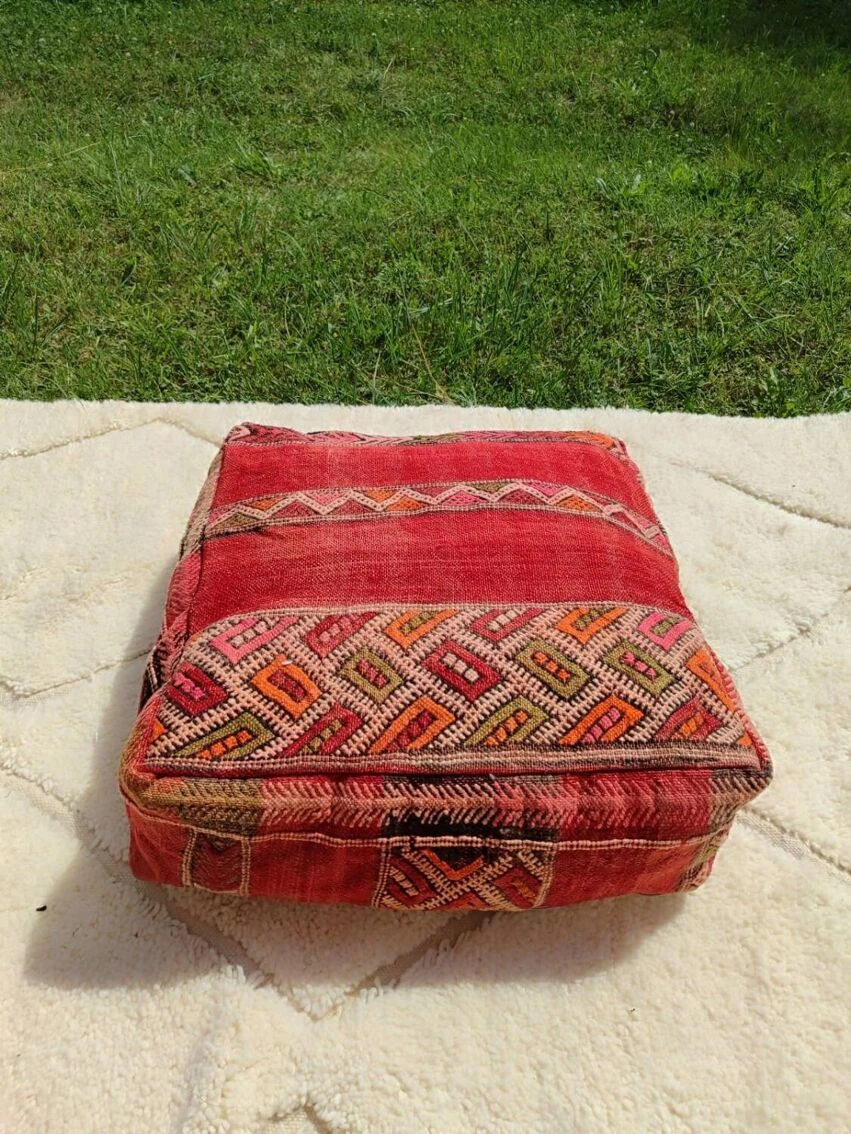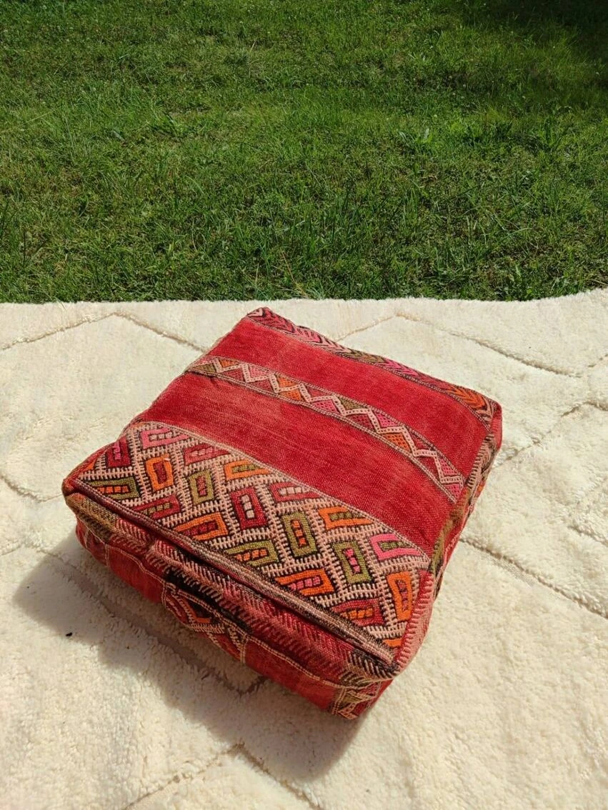 Berber pouf in natural wool (wool on wool) 100% handmade (unique piece) Ideal #original gift (fun yoga or boho) Fast and careful shipping Dimensions: 60*60*20 cm. Brand new, unpadded item. Kilim wool pouf, Berber patterns, Moroccan poufs, handmade furniture, boho decorative stools.