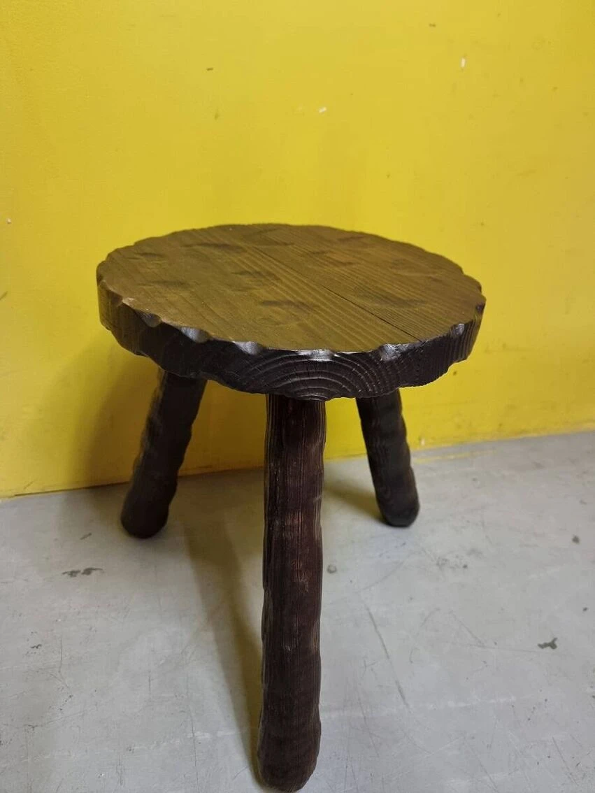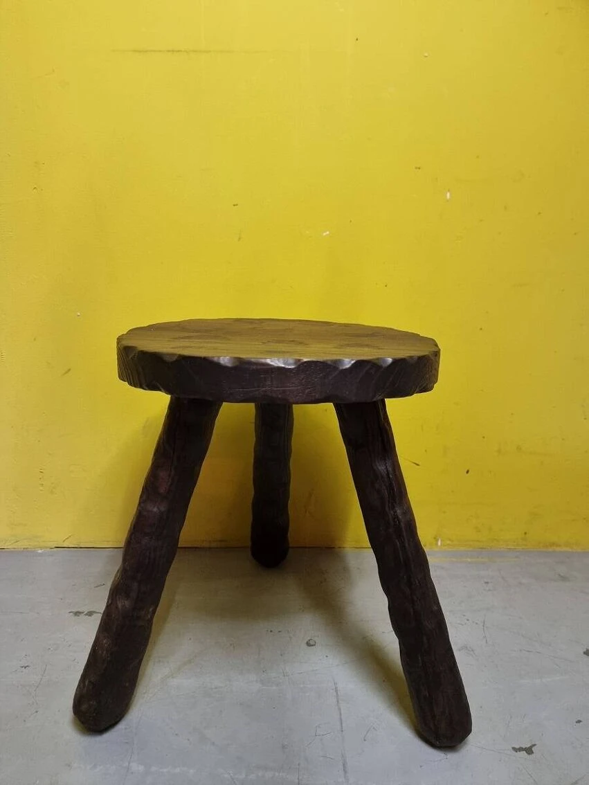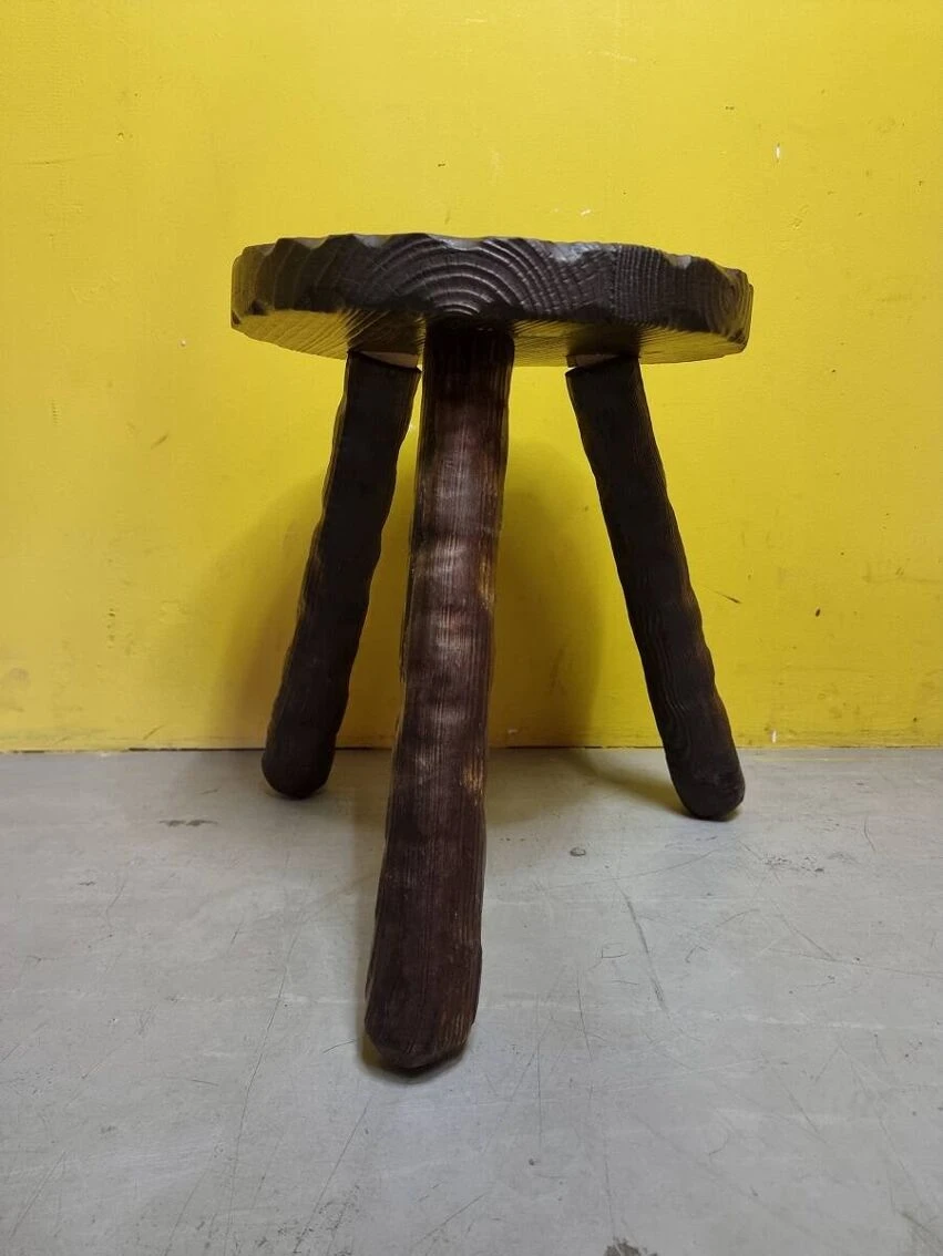 French wooden tripod stool from the 1970s.