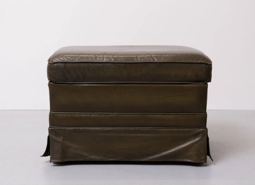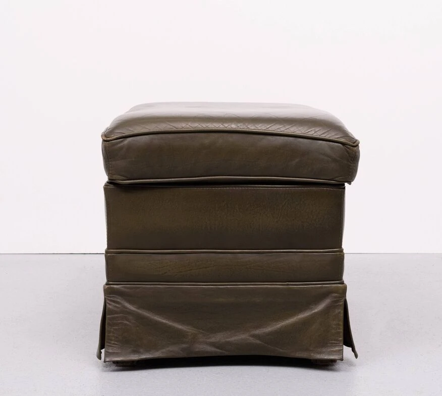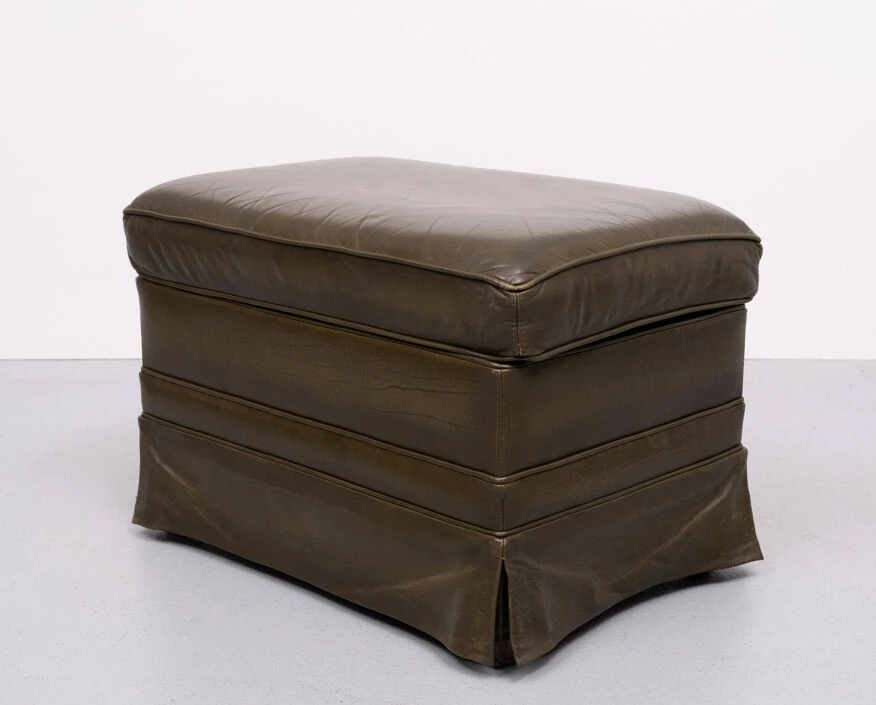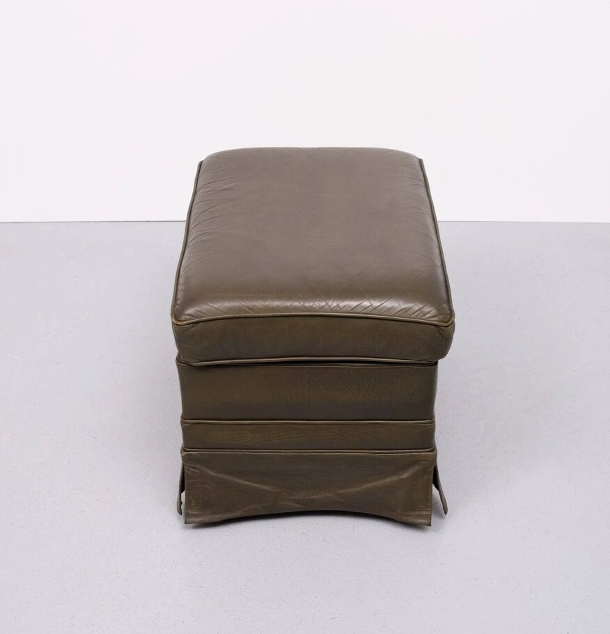 Very nice luxury pouf, smooth dark green leather.