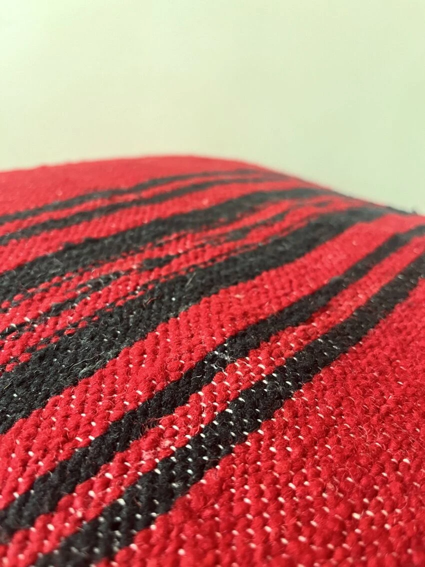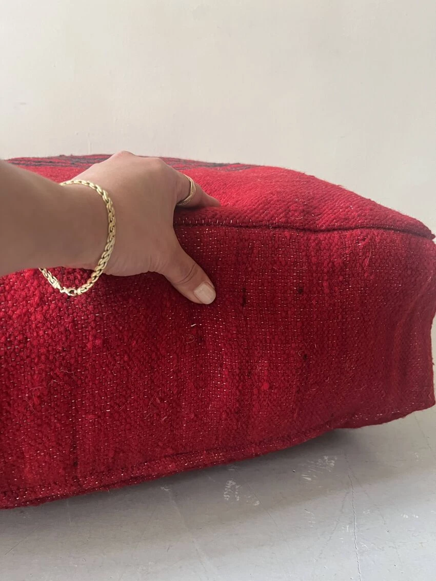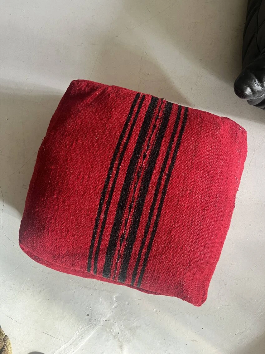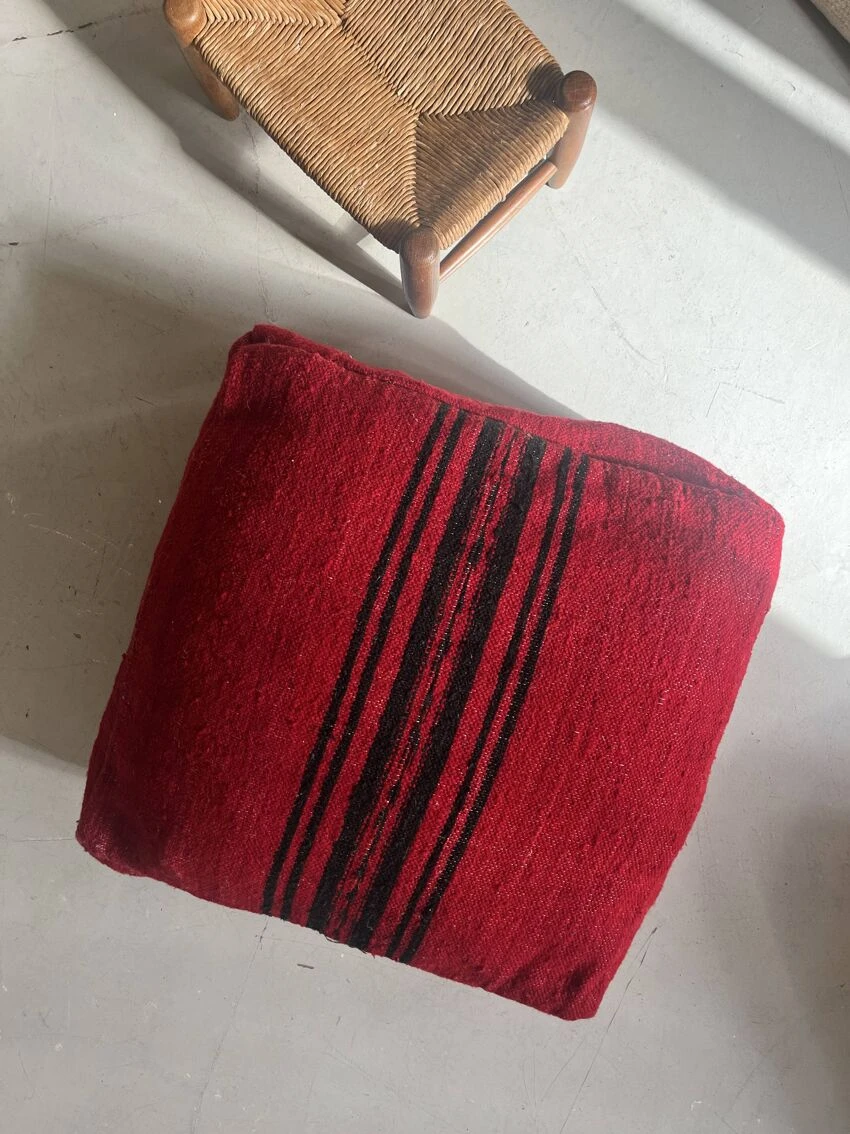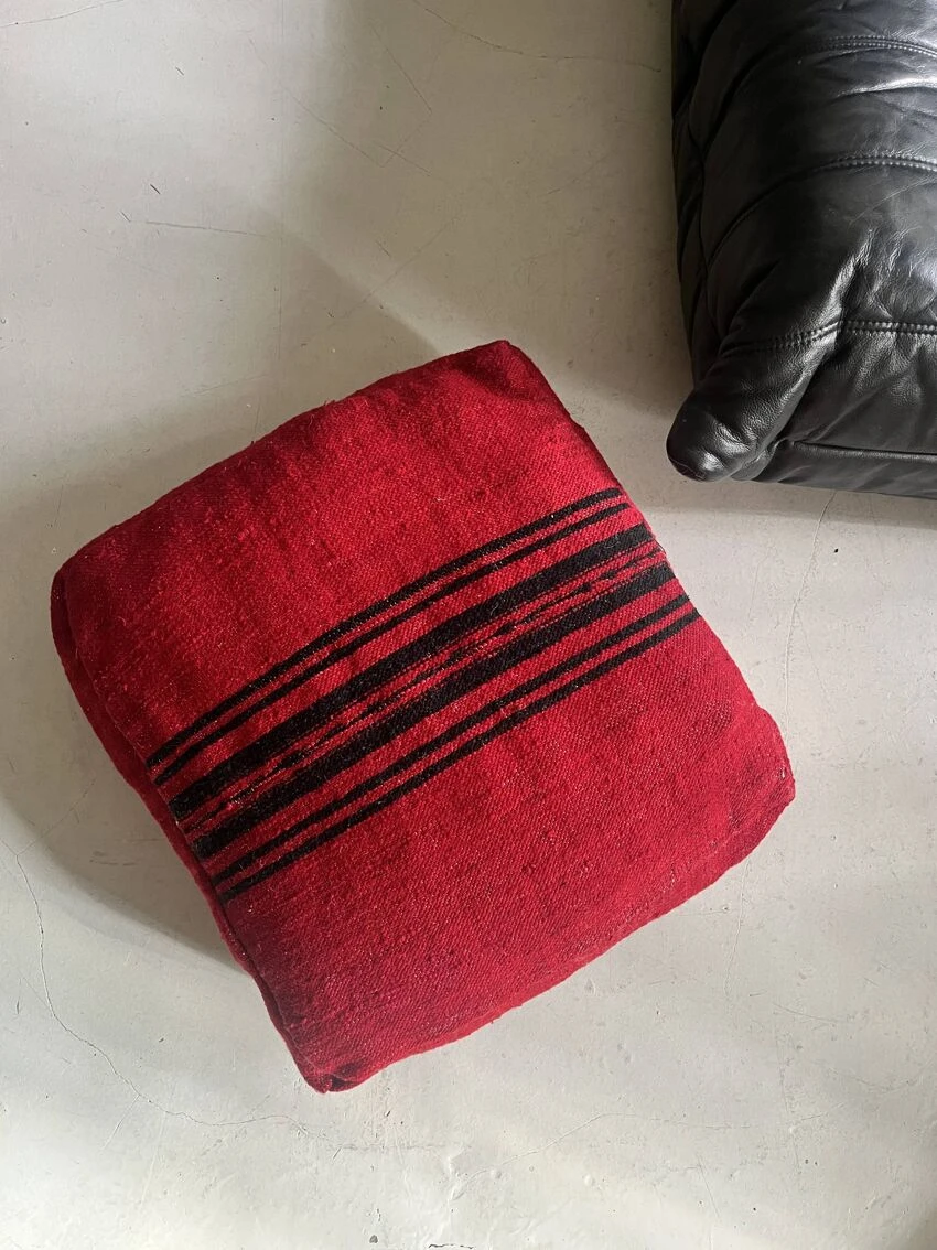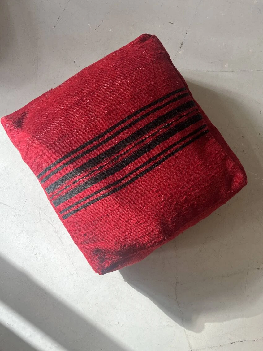 Handcrafted berber pouf made on the same principle as traditional hand-woven rugs made on a wooden loom.