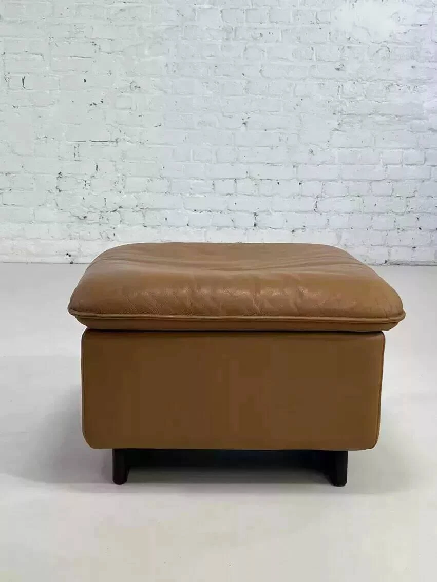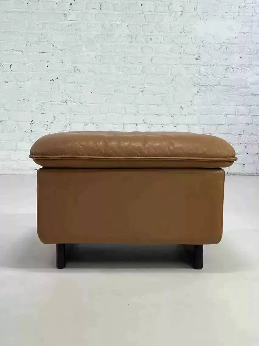 This leather ottoman comes from a ds 49 set from the 80s by de sede and is in perfect condition.