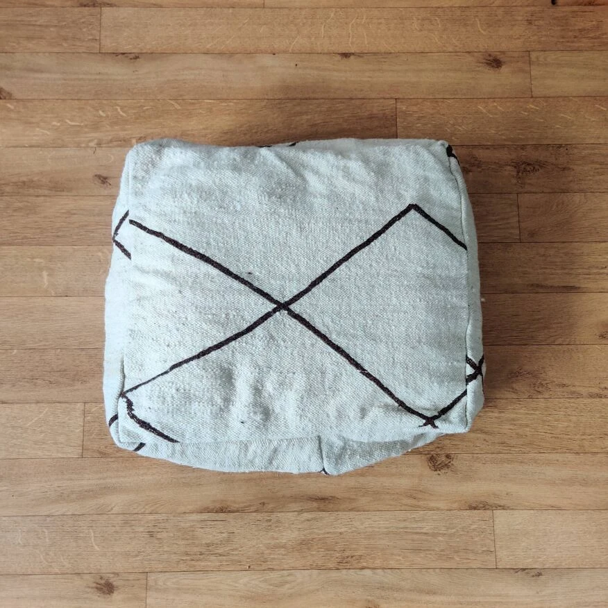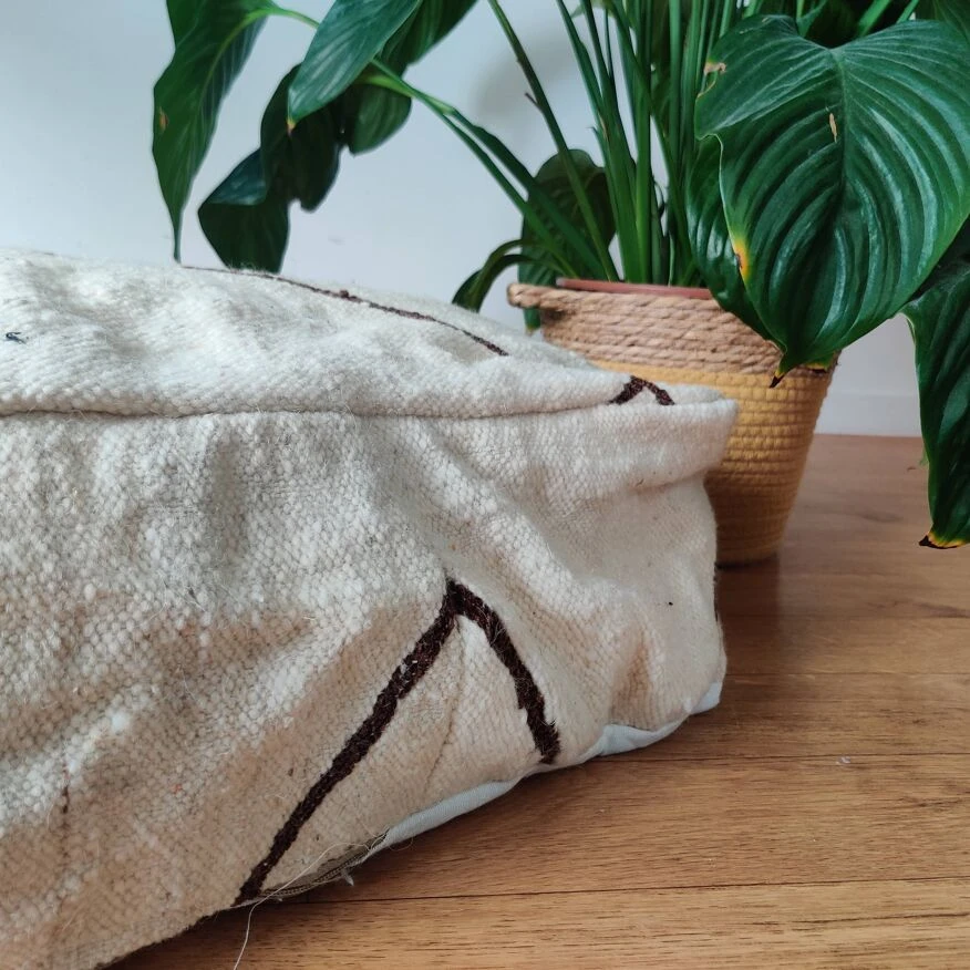 Moroccan berber wool pouf inspired by the famous béni ouarain berber rug.