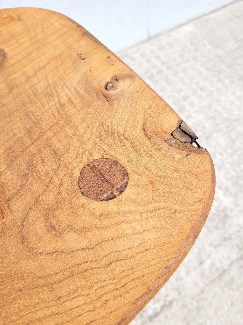 Country, farmhouse stool in solid wood with a beautiful free-form top the latter has been cleaned, sanded, oiled tripod foot, key assembly a pretty, very decorative piece which can also be used as a plant holder, at the end of the sofa, in a small side table width 40cm, height 45cm depth 28cm, weight 3.8kg fast and careful shipping, or pick up in auray check out my other listings!.