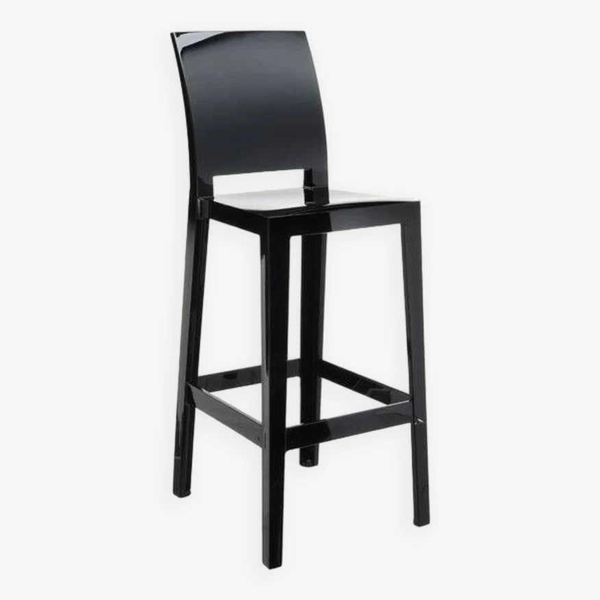 One More Please Black 75cm stool from the Kartell brand designed by PHILIPPE STARCK / New condition / Materials: Transparent or mass-dyed polycarbonate / Dimensions: L 38 x H 110 x width. 46 cm (Seat height 75 cm)