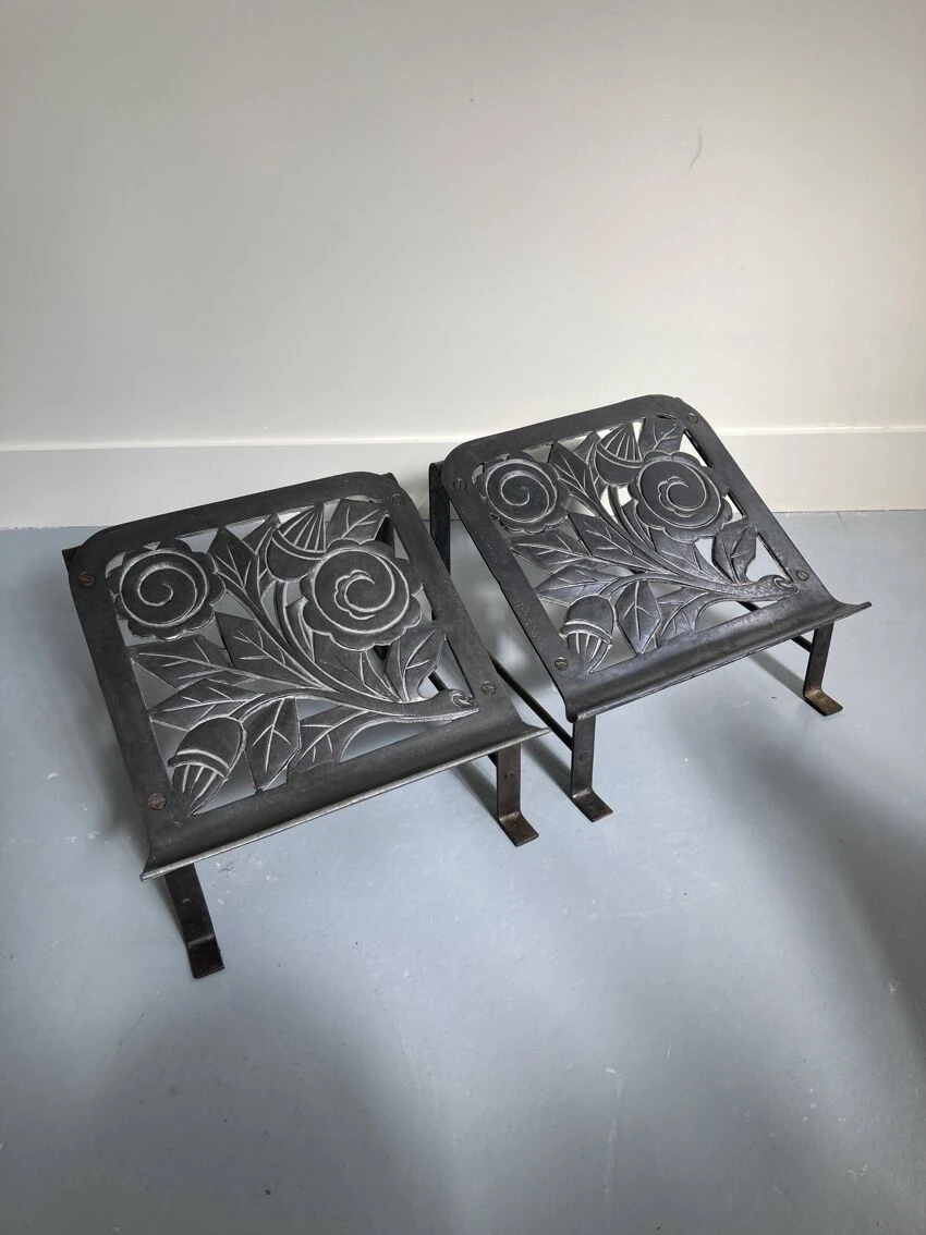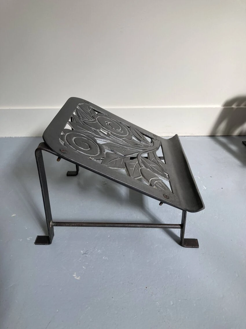 Rare piece from the beginning of the 20th century, 1920-1930, cast aluminum footrest, used in hairdressing salons, barbers to improve customer comfort.