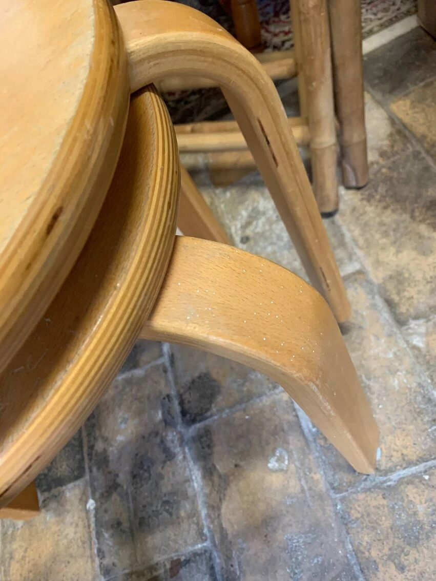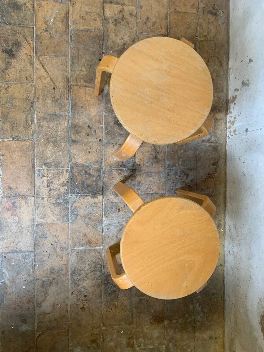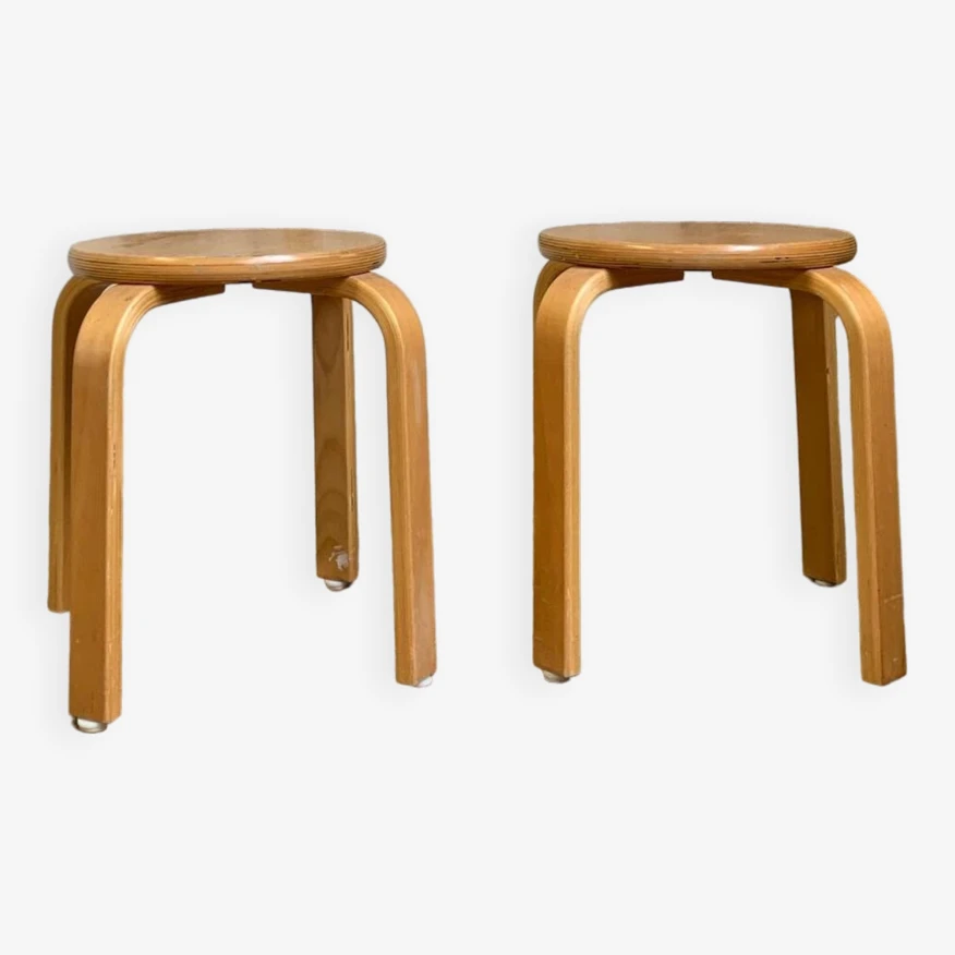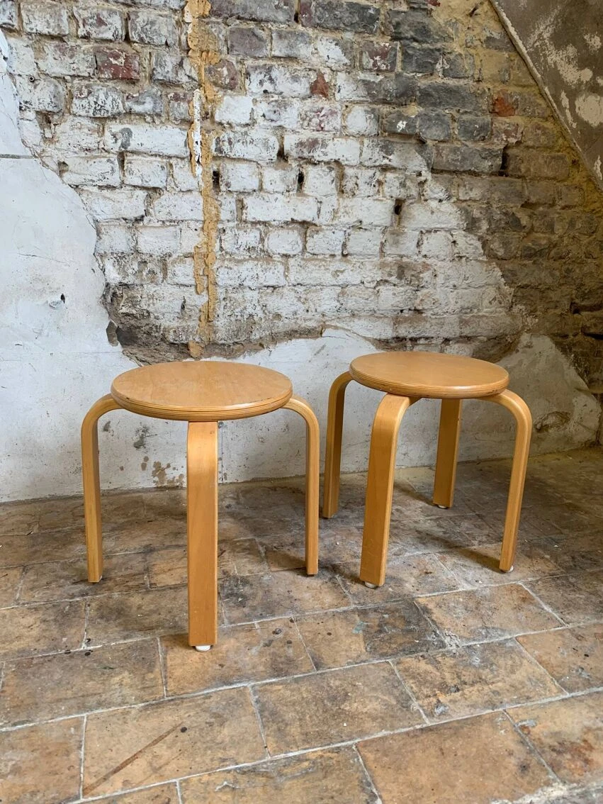 Pair of vintage humania stools, denmark to be used as an extra seat, small table or even a bedside table dimension: diameter: 42 cm height: 41.5 cm rolighed humania was founded in 1967 by cabinetmaker benny roliged.