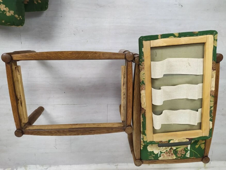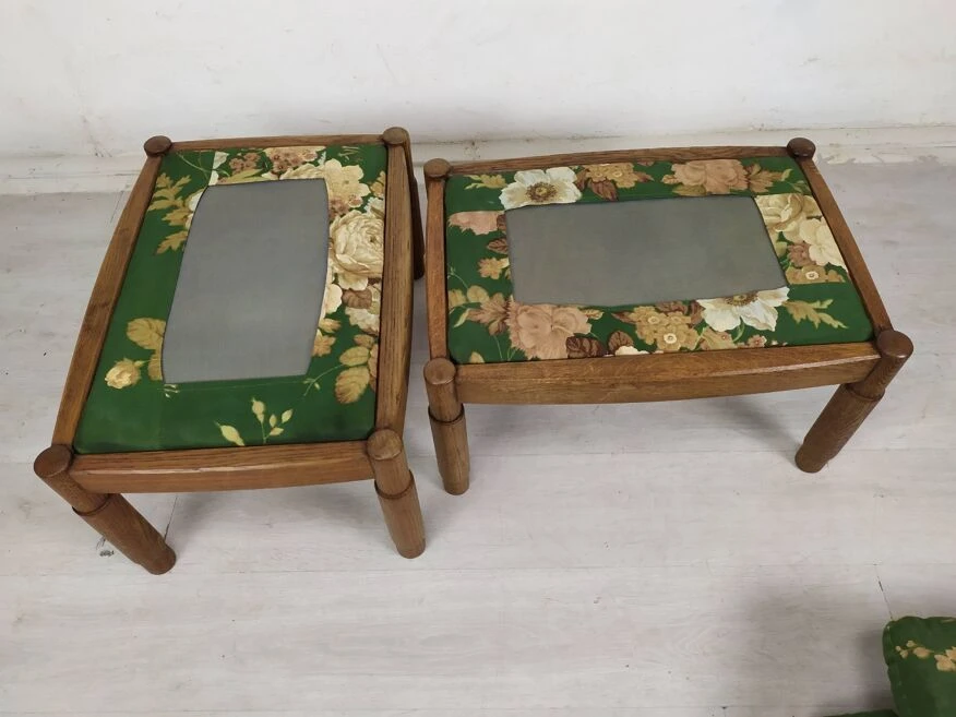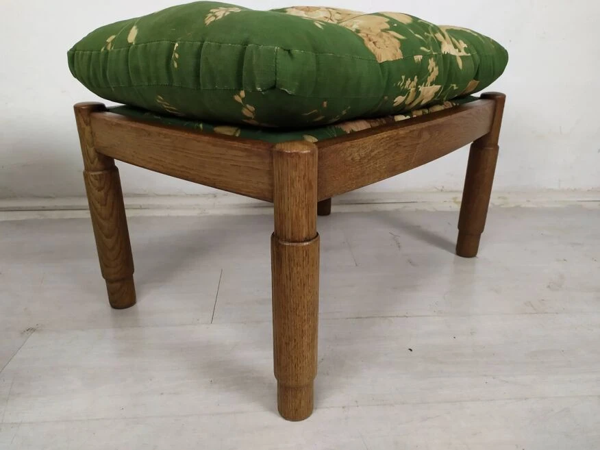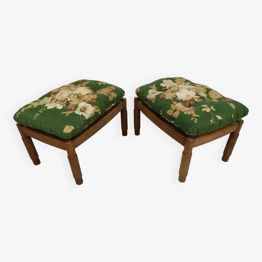 Pair of footrests, vintage 1950 pouf, solid oak.