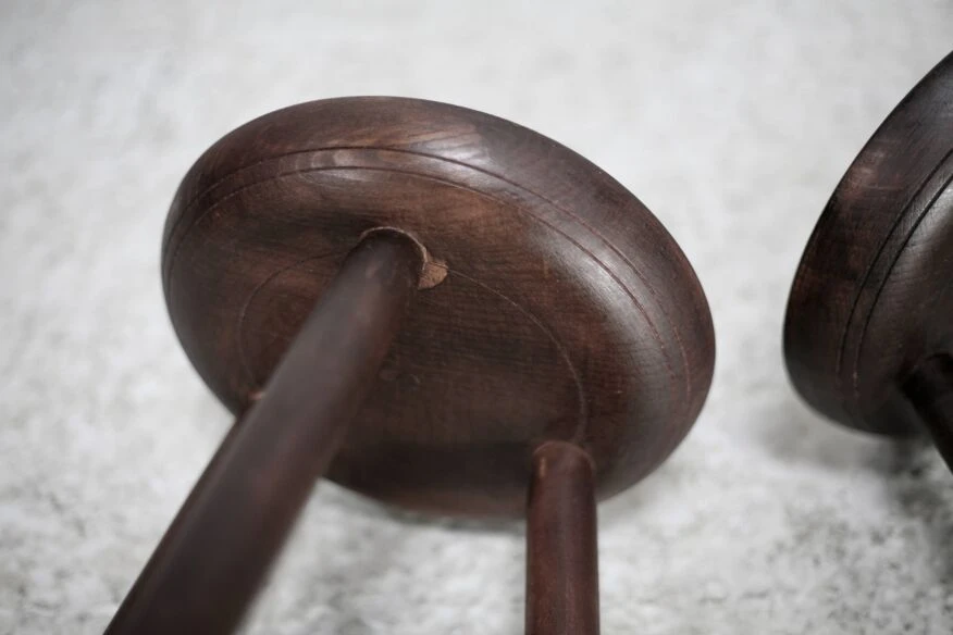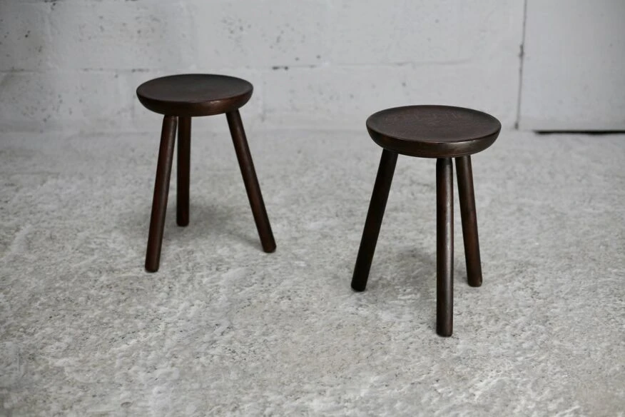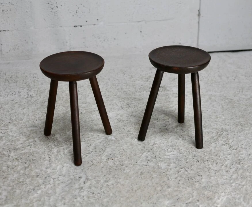 Pair of wooden tripod stools.