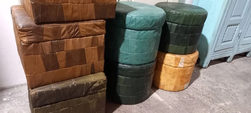 Designed by de sede, the patchwork storage pouf combines practicality and design!