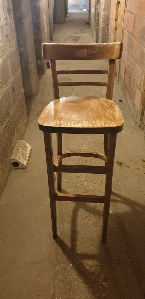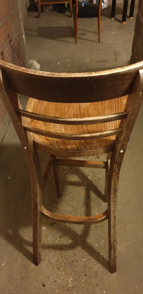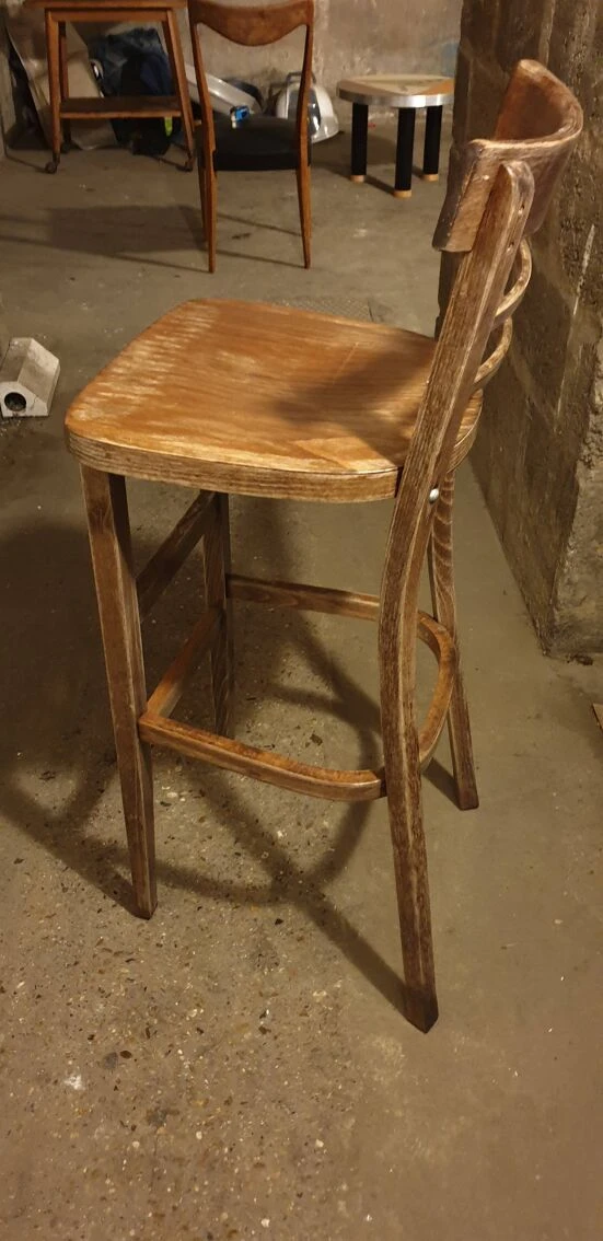 Solid beech bar chair: 40×41×106xm high.
