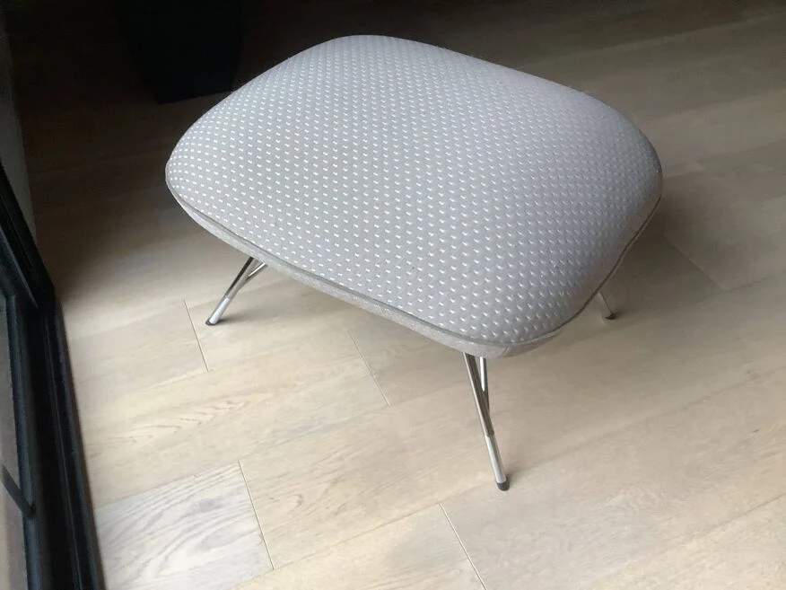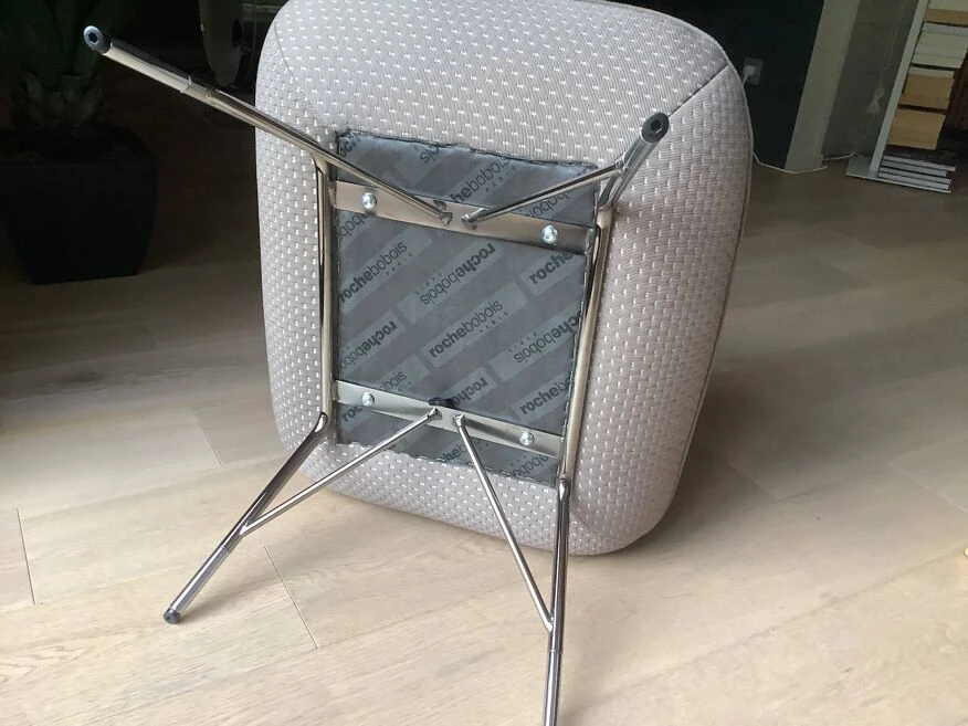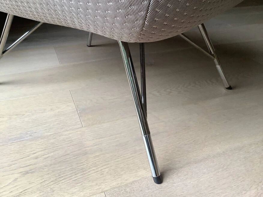 A 50’s inspiration for this Sputnik armchair designed by Sacha Lakic. Its one-piece seat is placed on a delicate chrome and black chrome metal frame, folded and welded. A pretty contrasting piping.