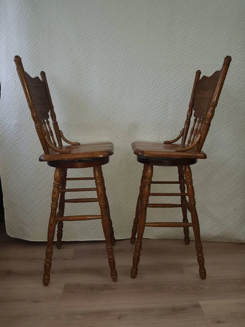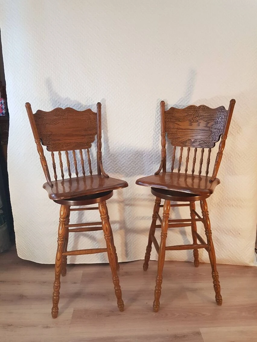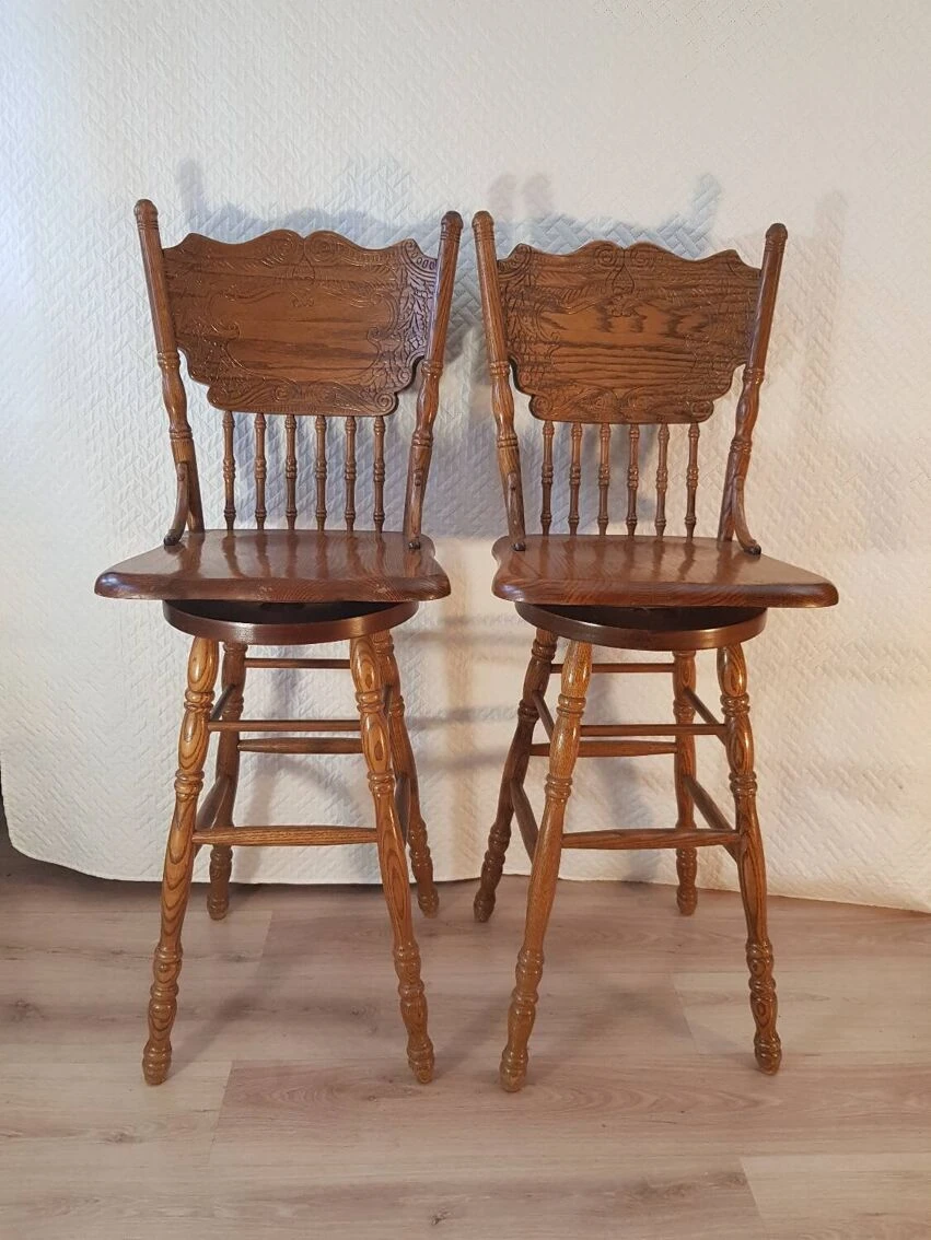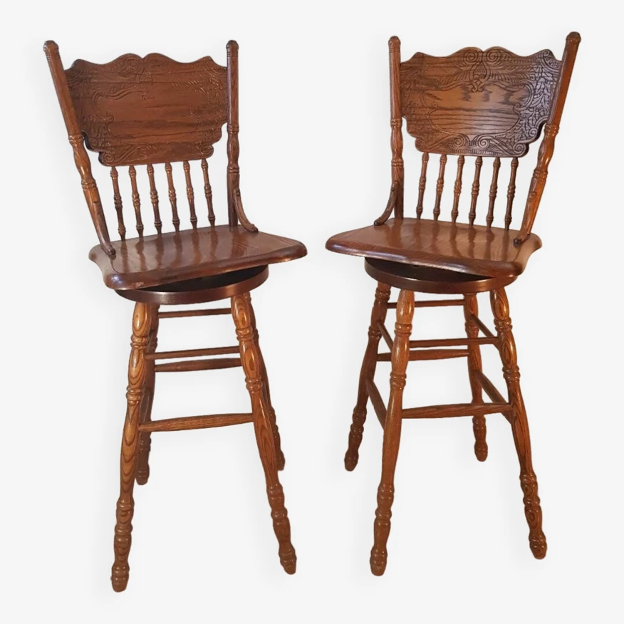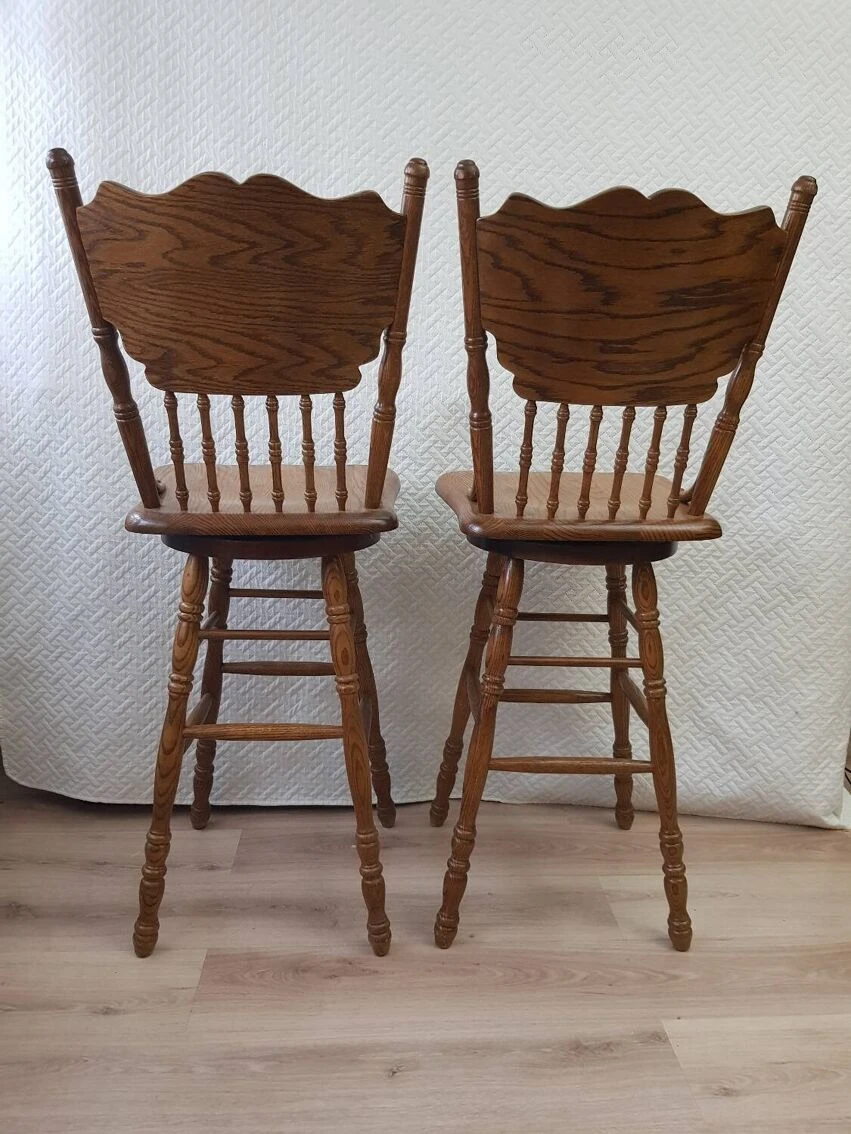 Set of two bar/bistro stools, swivel/rotating, in solid ash wood, 360⁰ rotation.