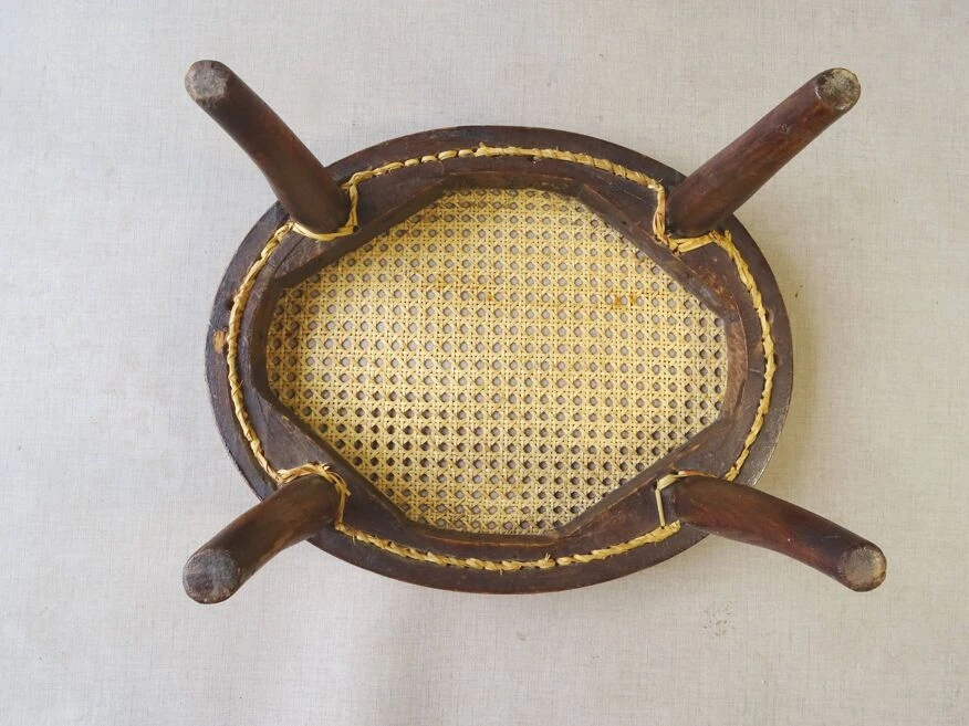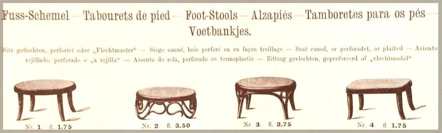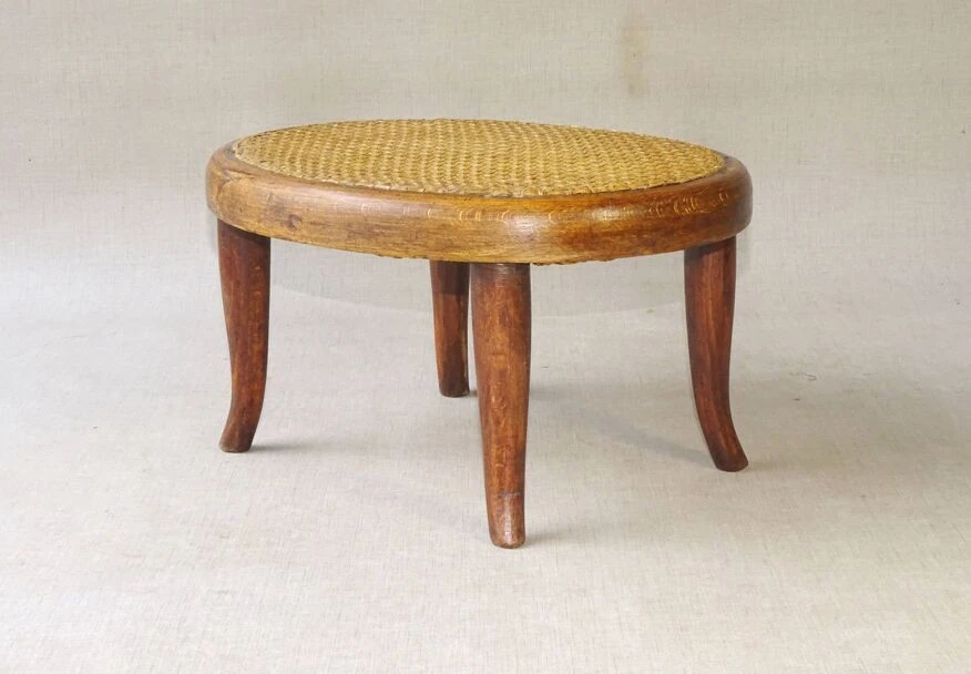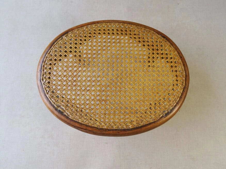 FUßSCHEMEL NR.1. Thonet Perfect condition Footrest No. 1 by Thonet, circa 1885/90, very good condition, fine manual canework in excellent condition. Blonde shellac. Dimensions: h: 19 cm, L: 35 cm, l: 26 cm More photos and information on request. Parcel France and Europe or Alsace collection.