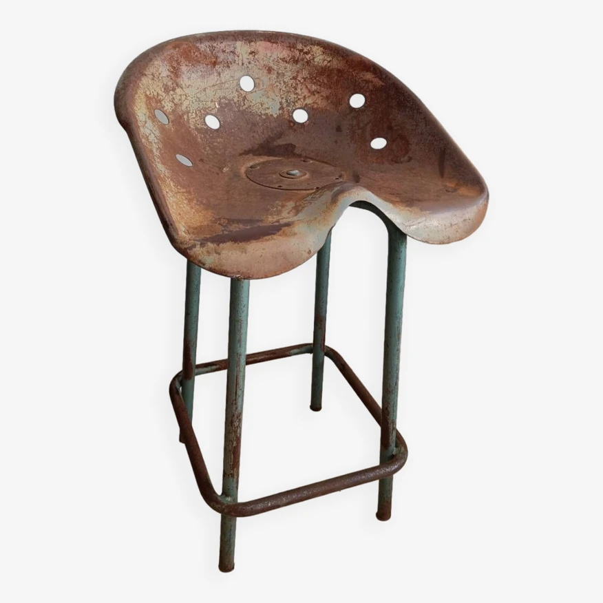 Old vintage stool with tractor seat, in its juice to see if you want to repaint it or not all in scrap metal quite heavy and robust.