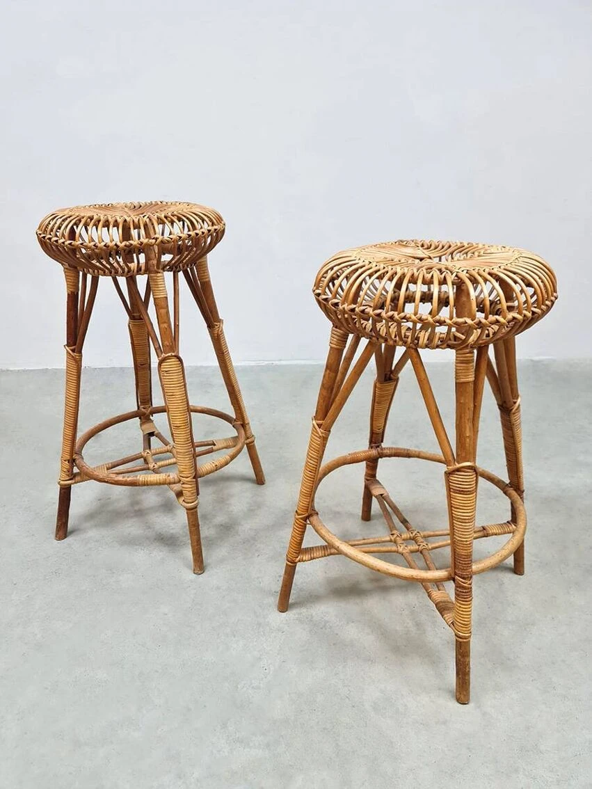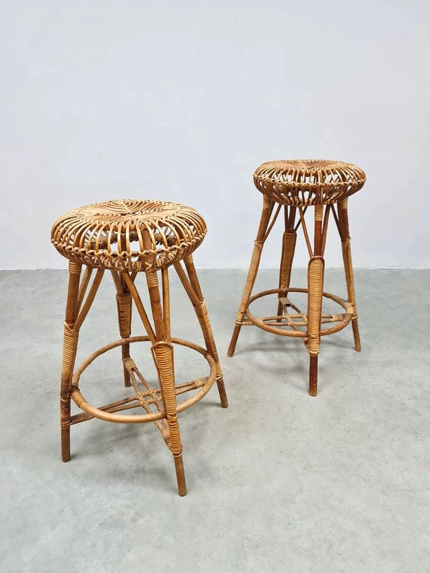 Bring summer into your home with these 2 vintage tropical rattan stools.