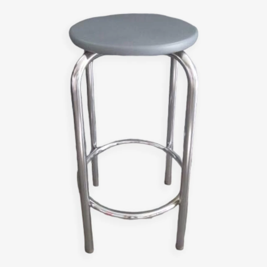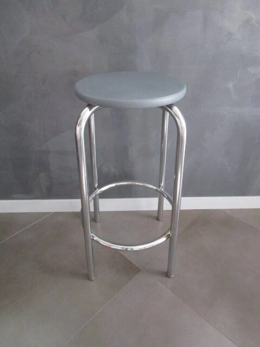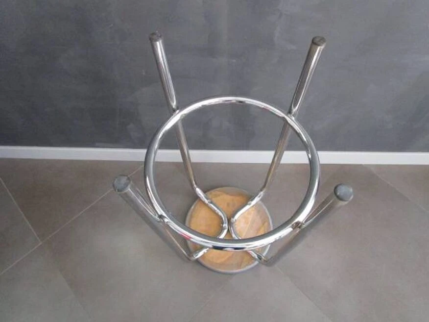 Vintage bar stool – chrome metal base and wooden seat (repainted) in very good condition height: 75cm seat diameter: 34cm leg diameter: 50cm the products offered in our shop are old, they may show signs of wear, of use or scratches which give the product its character and authenticity, they are best presented in the description, through photos and texts, please look at them carefully.