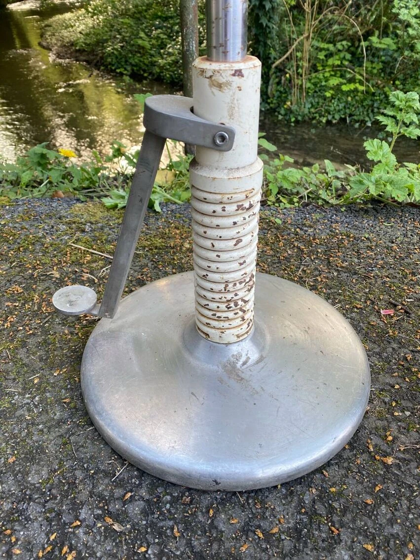 Ergonomic dentist stool from the 60s, spring-mounted, pivoting on the sides and hydrolic seat (perfectly functional high and low adjustment) Cast iron base in workshop/architect style. Black imitation Skai seat Original patina Atypical and original object ideal in a retro industrial style interior. Maximum total height 100cm Maximum seat height 88cm Minimum height 70cm Base diameter 30cm