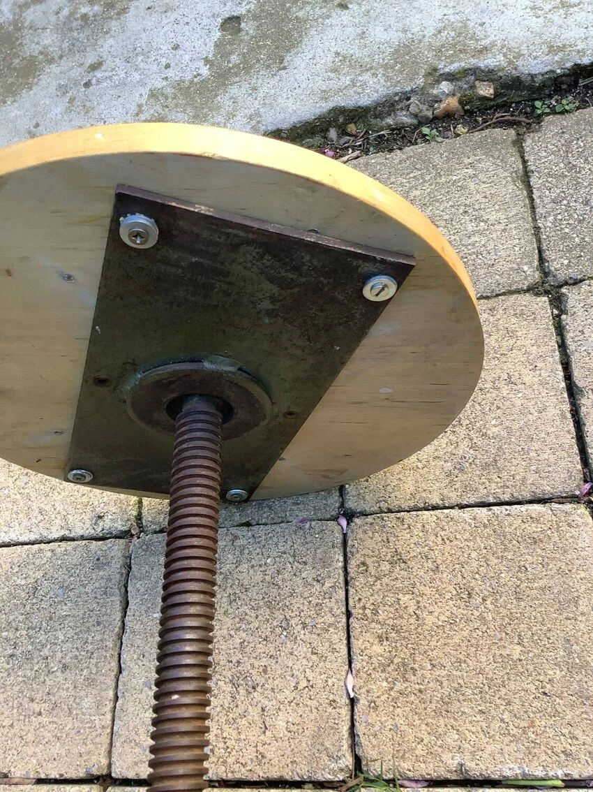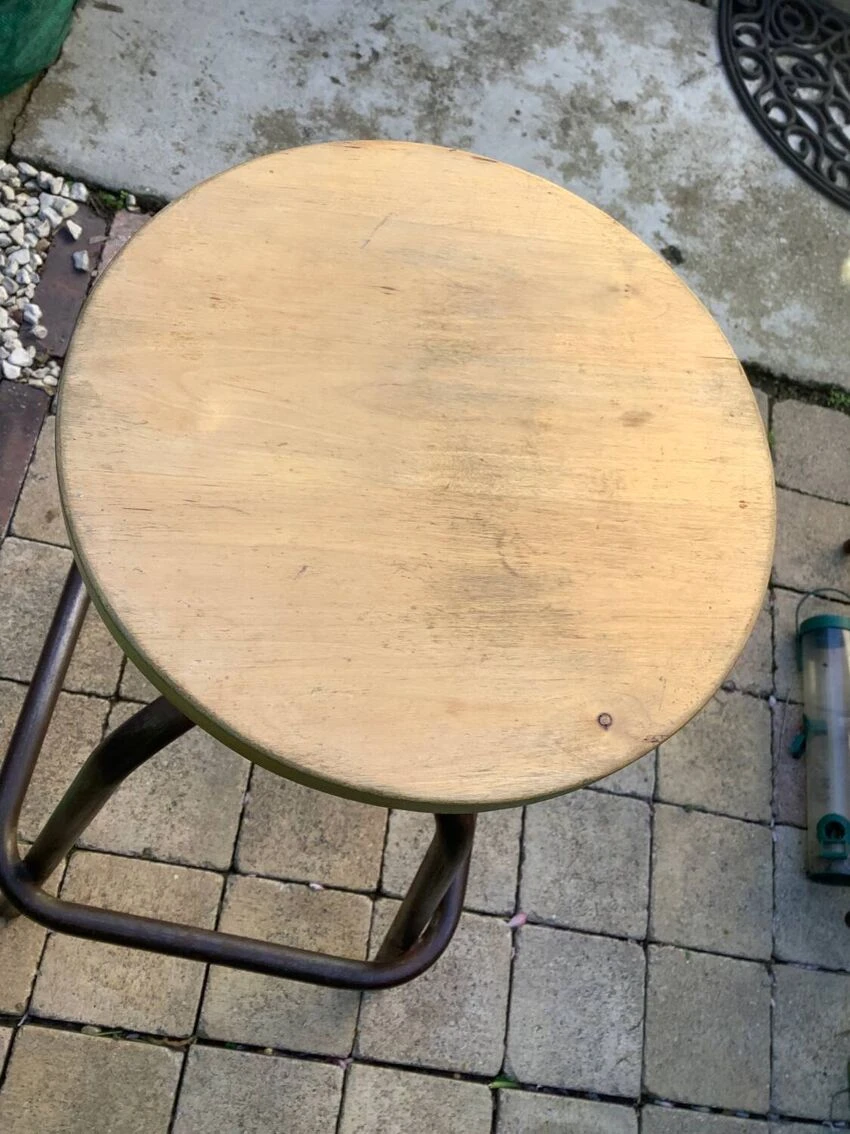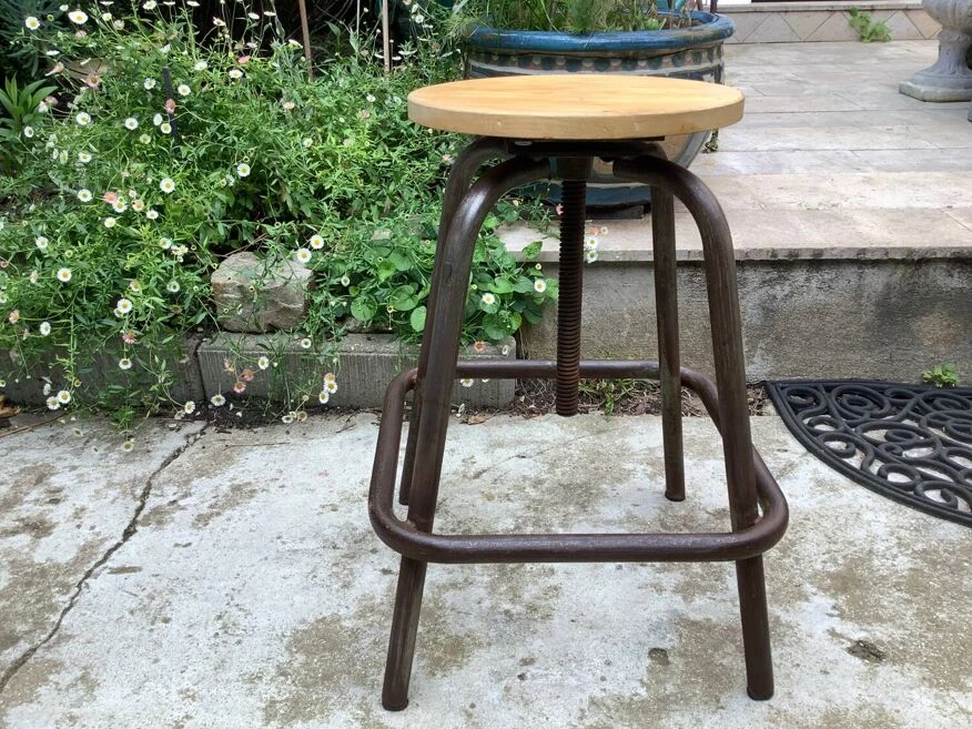 Minimum height 55cm maximum height 76cm diameter of the wooden seat 30cm footrest bar 20cm from the ground width 40cm footprint 38cm.