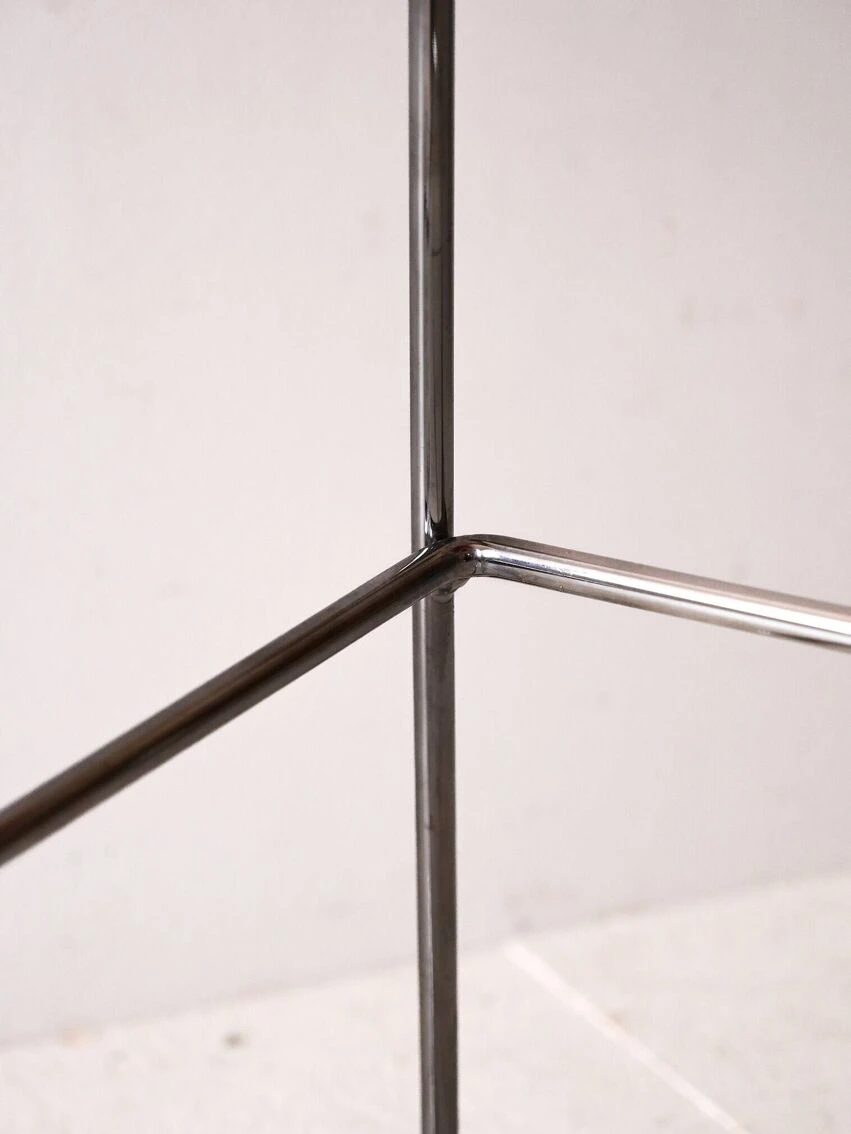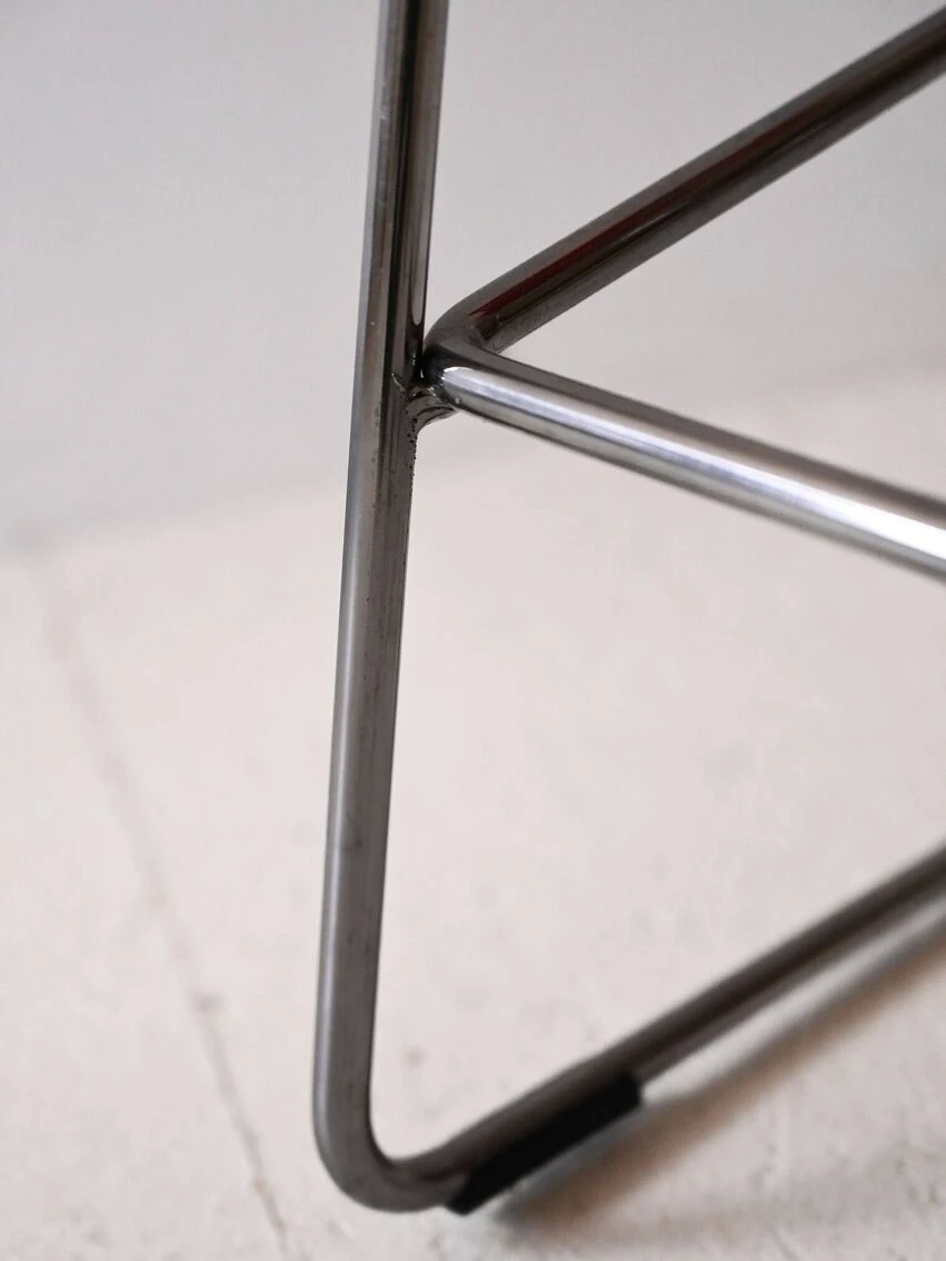 Featuring long, tubular chrome metal legs, this stool not only offers exceptional stability but also adds a touch of modern elegance with its sleek, polished appearance.