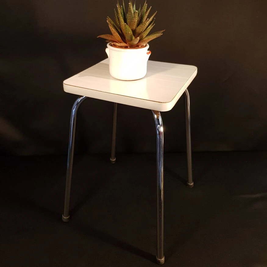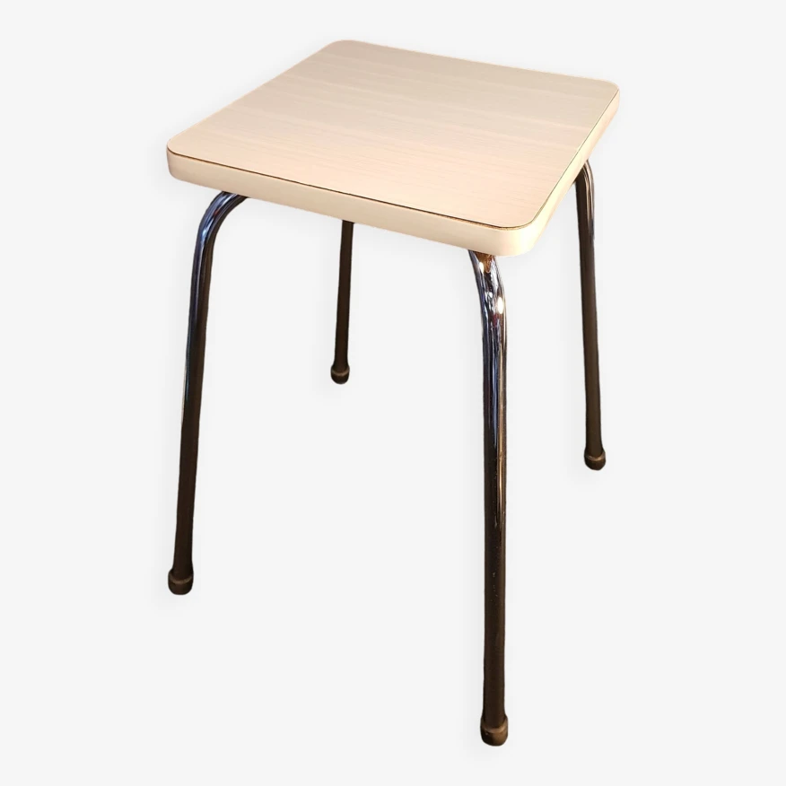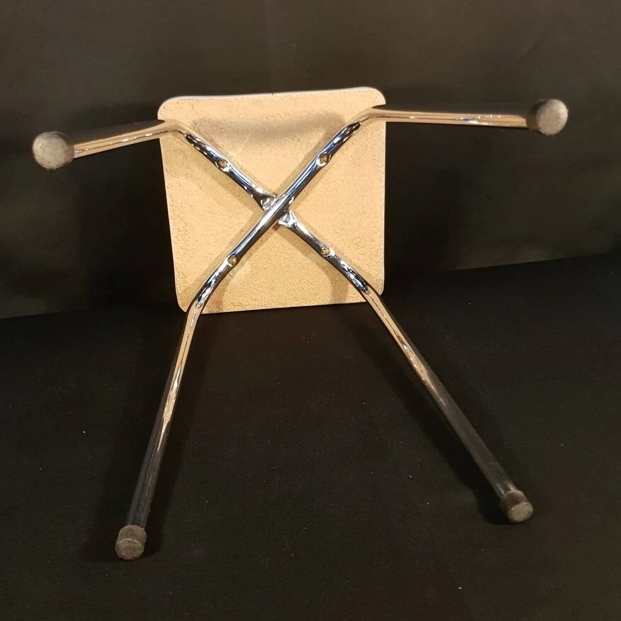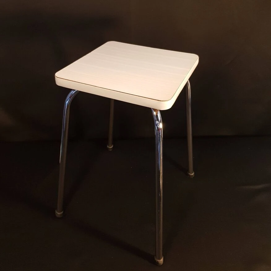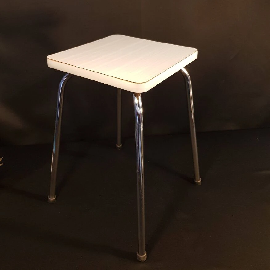 The chrome has been cleaned but retains marks of time, the formica has a few scratches. 33 X 33 X h 45 cm, seat 27.5 X 27.5 cm.