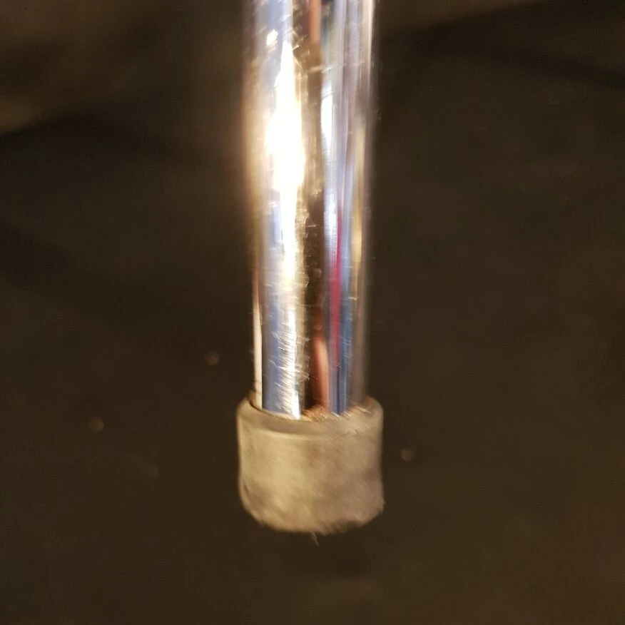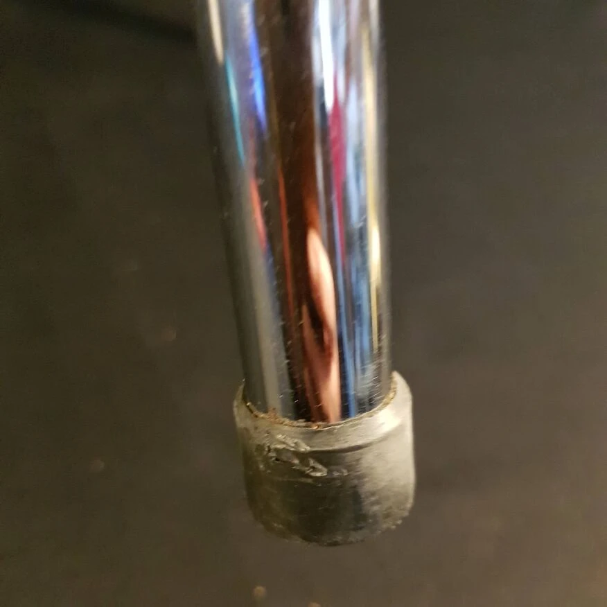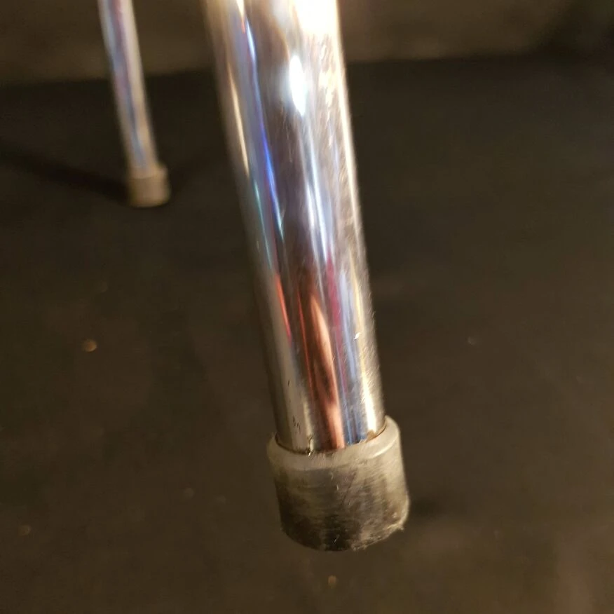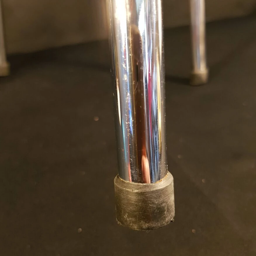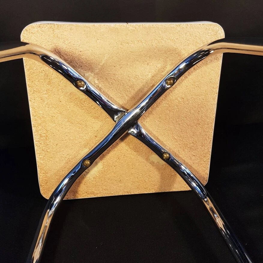 The chrome has been cleaned but retains marks of time, the formica has a few scratches. 33 X 33 X h 45 cm, seat 27.5 X 27.5 cm.