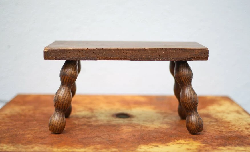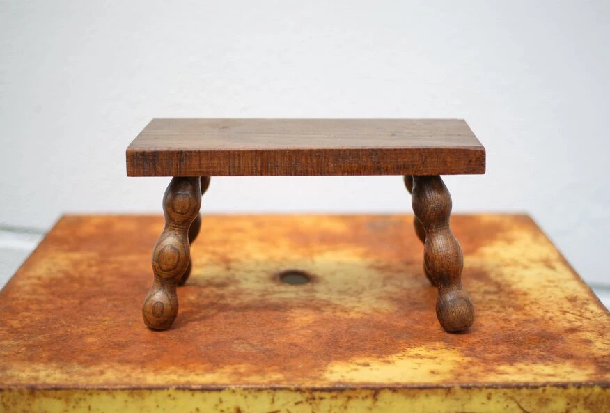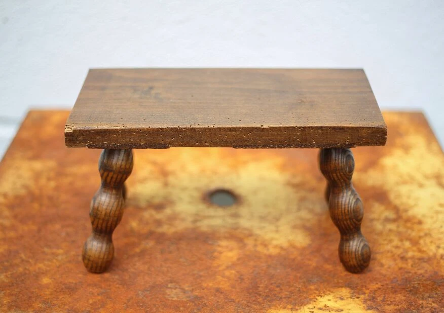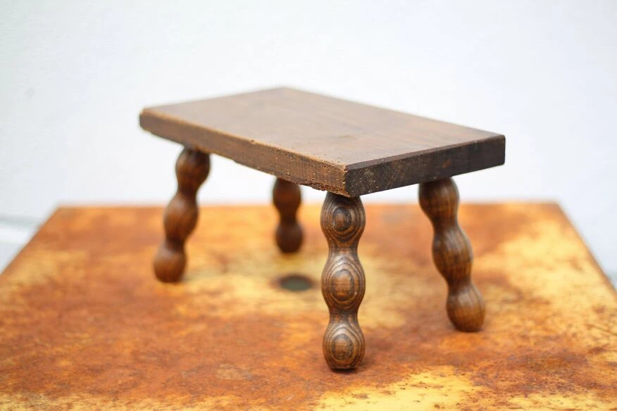 Wooden stool, small beaded foot stool, plant holder, interior decoration, wood stool measurement: height 17 cm, width 31 cm X 17 cm weight: 1 kg 100 good vintage condition, (moth treated, wear) see photos.